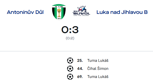 Ve velmi větrném počasí zajíždělo naše béčko do Antonínova Dola, kde chtělo potvrdit formu z posledních kol. To se povedlo, v prvním poločase se prosadil Lukáš Tuma a minutu před koncem pěknou brankou Šimon Číhal stanovil na poločasových 0:2. Ve druhém poločase upravil skóre svojí druhou trefou v zápase opět Lukáš Tuma a rozhodl o výhře 0:3 a prodloužení série vítězství v řadě již na tři utkání, co naše béčko dlouho nepamatuje.